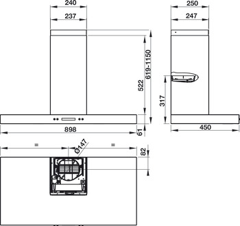 • Kích thước sản phẩm: 898R x 619-1150C x 450S mm