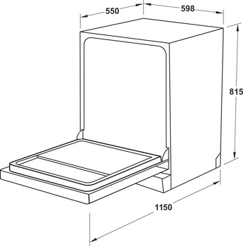 • Kích thước sản phẩm: 598R x 815C x 550-1150S mm